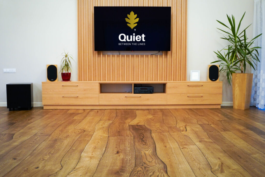 The flooring is constructed as a two-layer parquet, where a 5,5 mm oak lamella is glued on 12 mm plywood. In this way, it gains stability even in changing seasons and humidity.